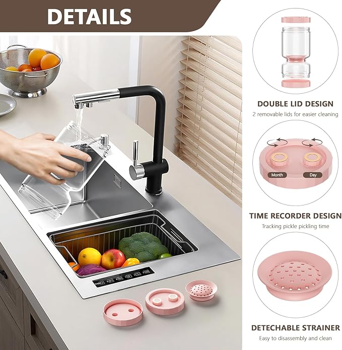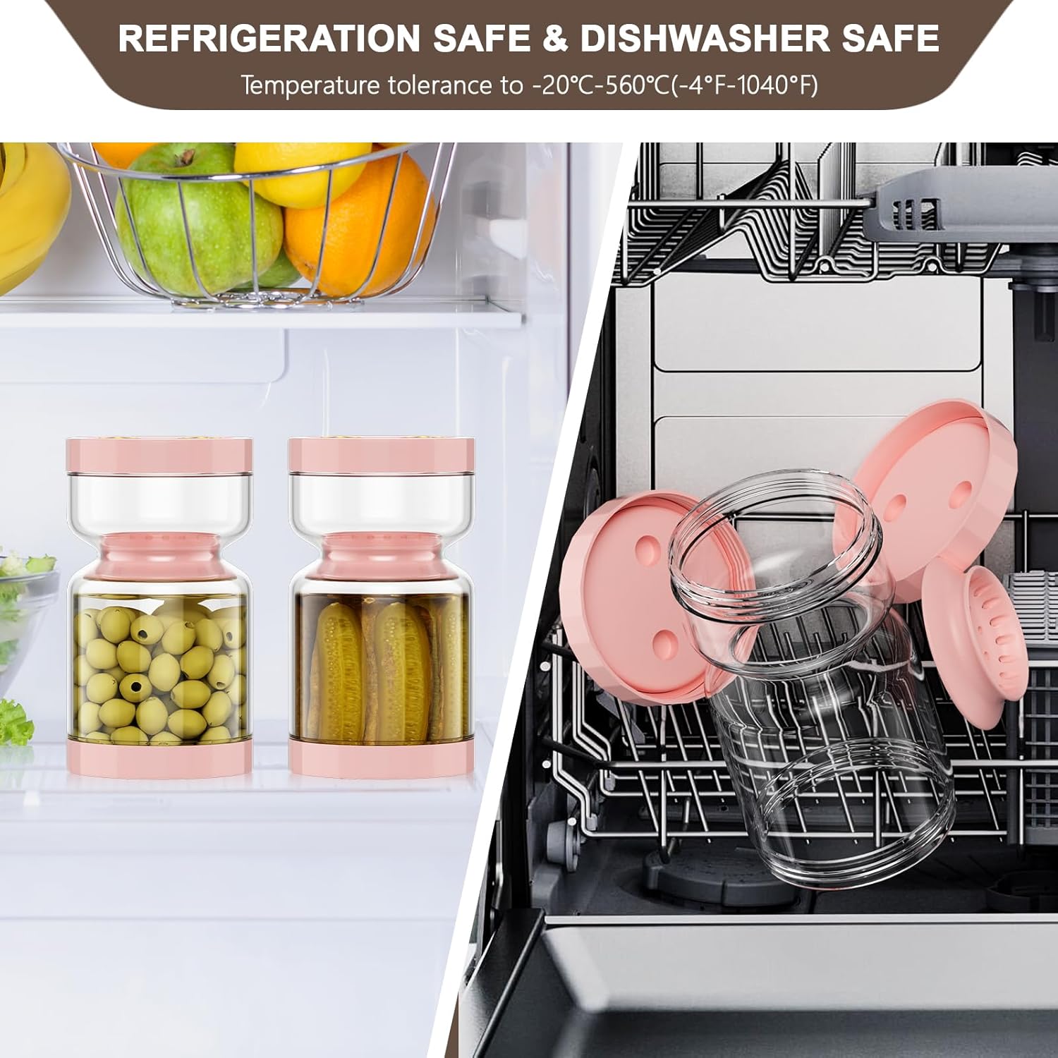 Durable & Safe Material : This pickle keeper is made of high quality lead-free borosilicate glass, able to withstand temperature changes from -20°C to 560°C (-4°F to 1040°F), refrigerator and dishwasher safe. Unlike plastic jars, borosilicate glass pickle jar will not corrode under brine, vinegar and salt, ensuring durability and long-lasting use.